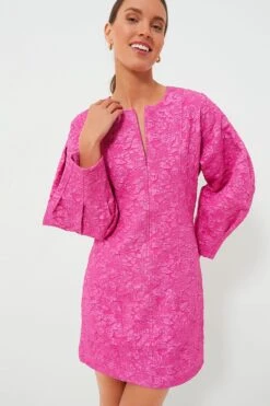Come on Barbie! The Rose Violet Amyra Dress is a fun, feminine mini in a vibrant hot pink color. Boasting a front zip closure, balloon sleeves, and a textured fabric, this flattering style will turn heads at your next function. Pair with silver heels and drop earrings for the ultimate party look.Â