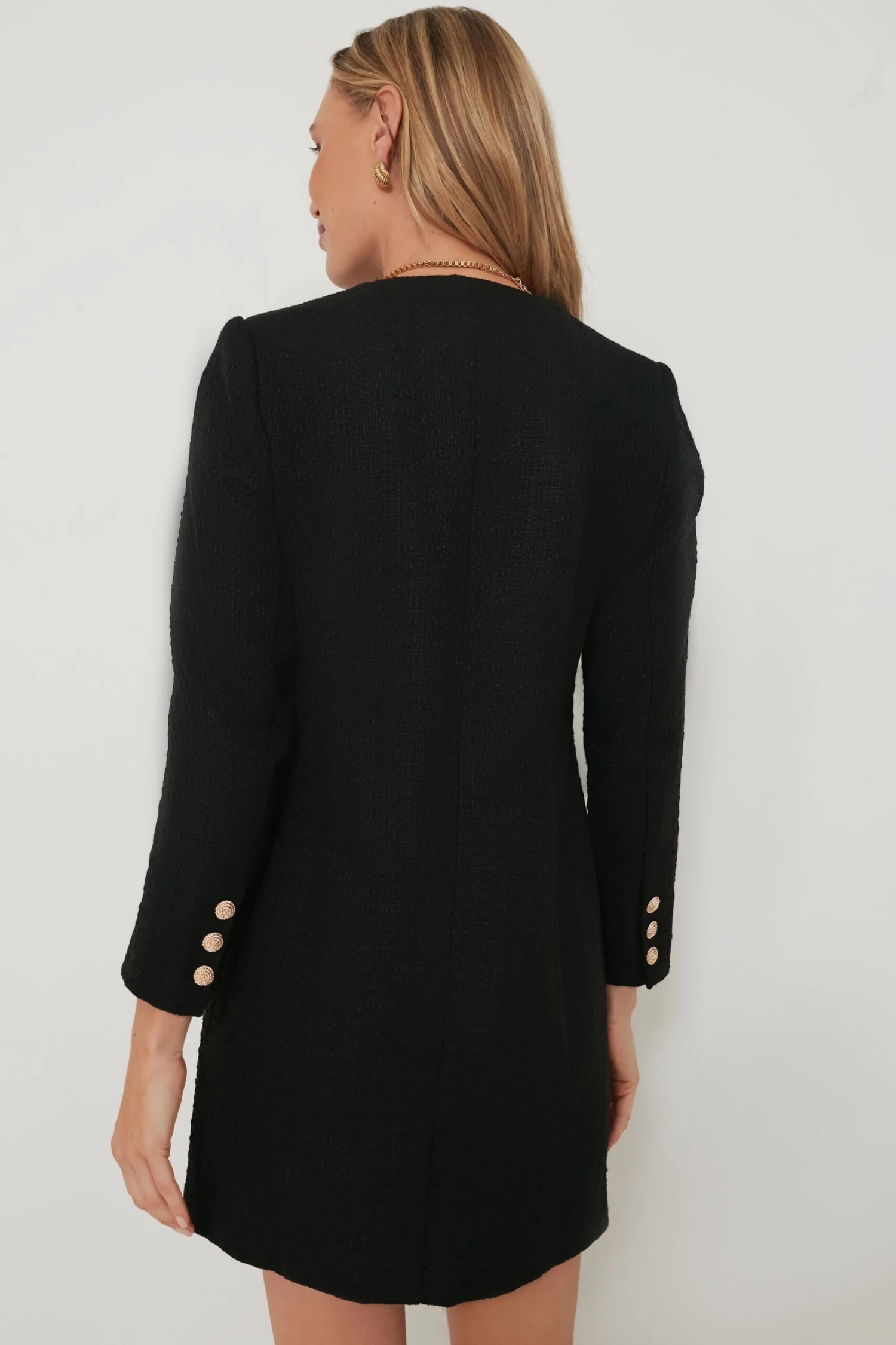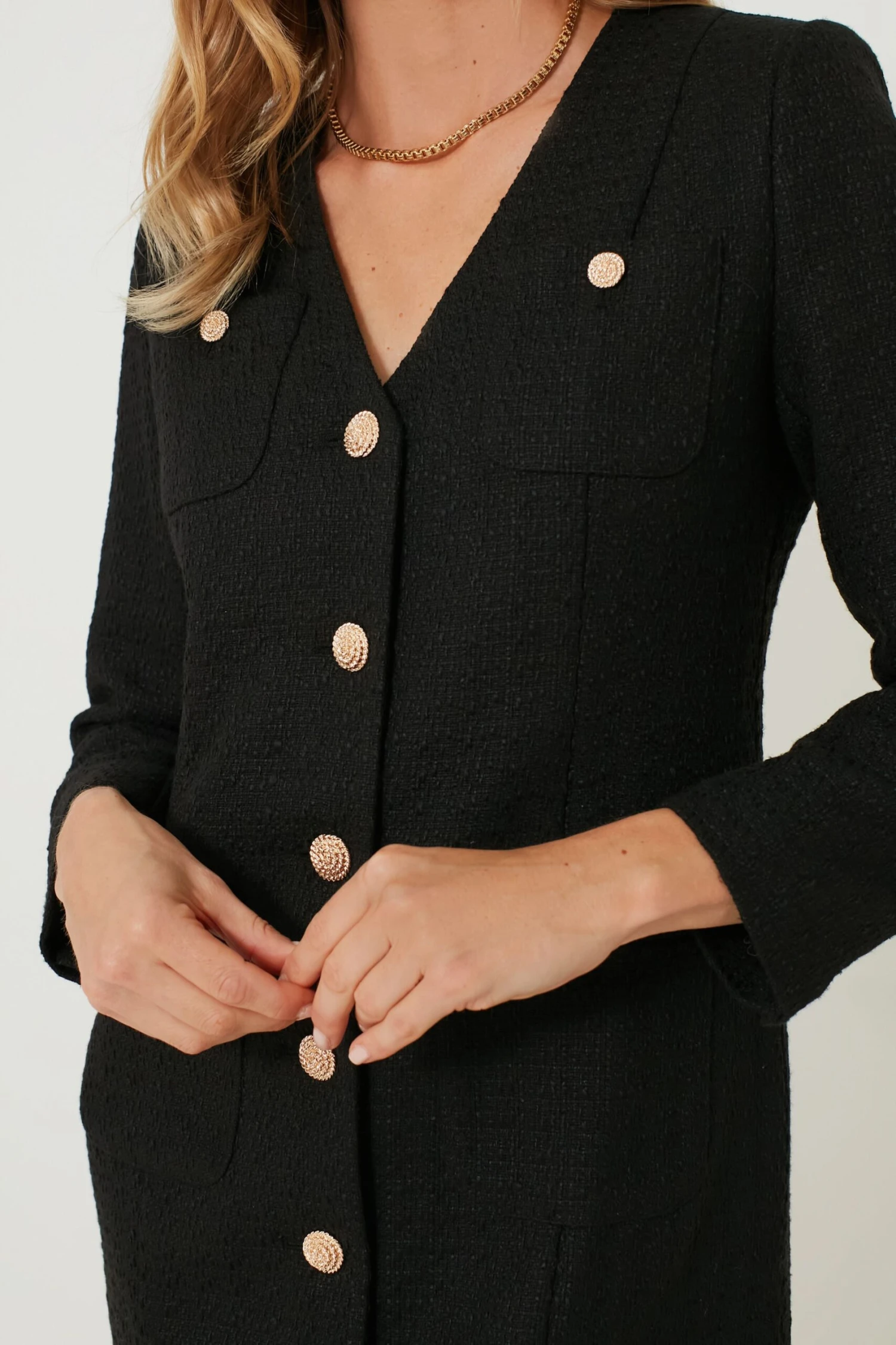 The Black Keira Dress is equal parts polished and glamorous, just how we like it. Done in a gorgeous classic black tweed that is endlessly wearable, this mini features a plunging V-neckline, long sleeves, and vintage inspired gold-buttons that add a classic finish. Add gold heels and glimmering accessories for a chic, luxe look that’s meant for dinner dates and cocktail parties.Â