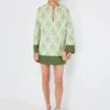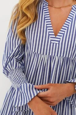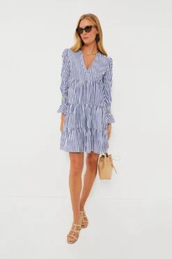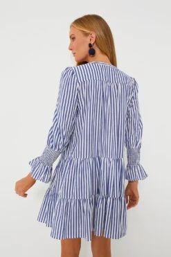 A Tuckernuck fan favorite, the Blue and White Stripe Cotton Poplin Kenzo Dress is the mini of the season. Featuring feminine flutter smocked wrists, a V-neckline, and a loose empire waist, this flirty frock is the most flattering day dress. Pair with sneakers and your favorite sunglasses for a casual day look or dress up with heels and statement earrings for date night.