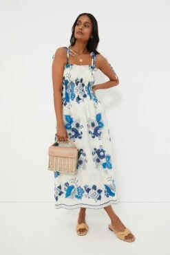 Our beach getaway is planned and this is the resort style we’re taking along with us. The silhouette of your dreams in a beautiful floral print, the Blue Royal Kaia China Panel Dress fully embodies easy elegance – and ensures you will be on the best-dressed list. Versatile enough to wear to an elevated brunch or a casual wedding, the smocked bodice, micro ruffle trim neckline, self-tie shoulder straps, and flattering fit make this maxi one of our must-haves.