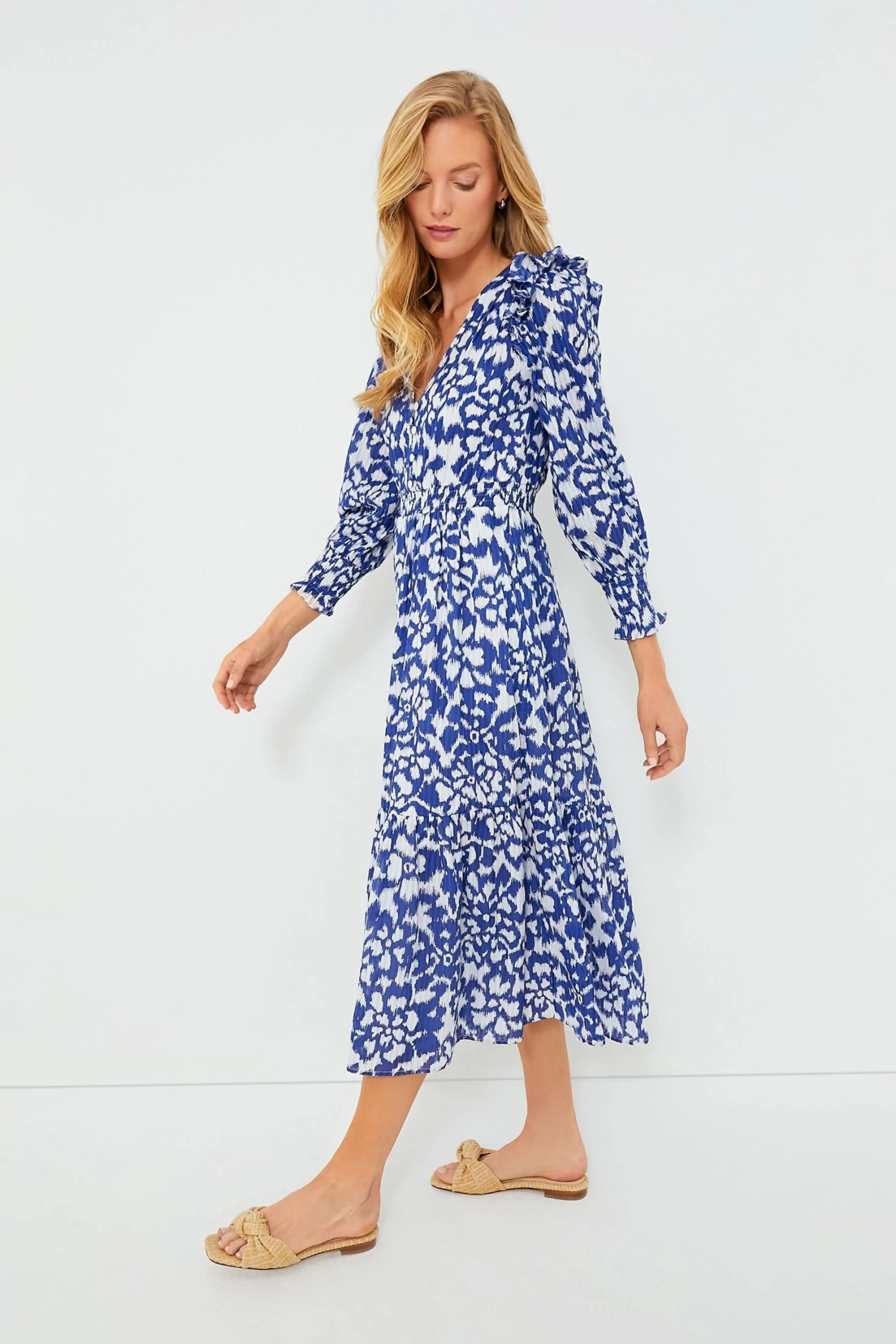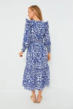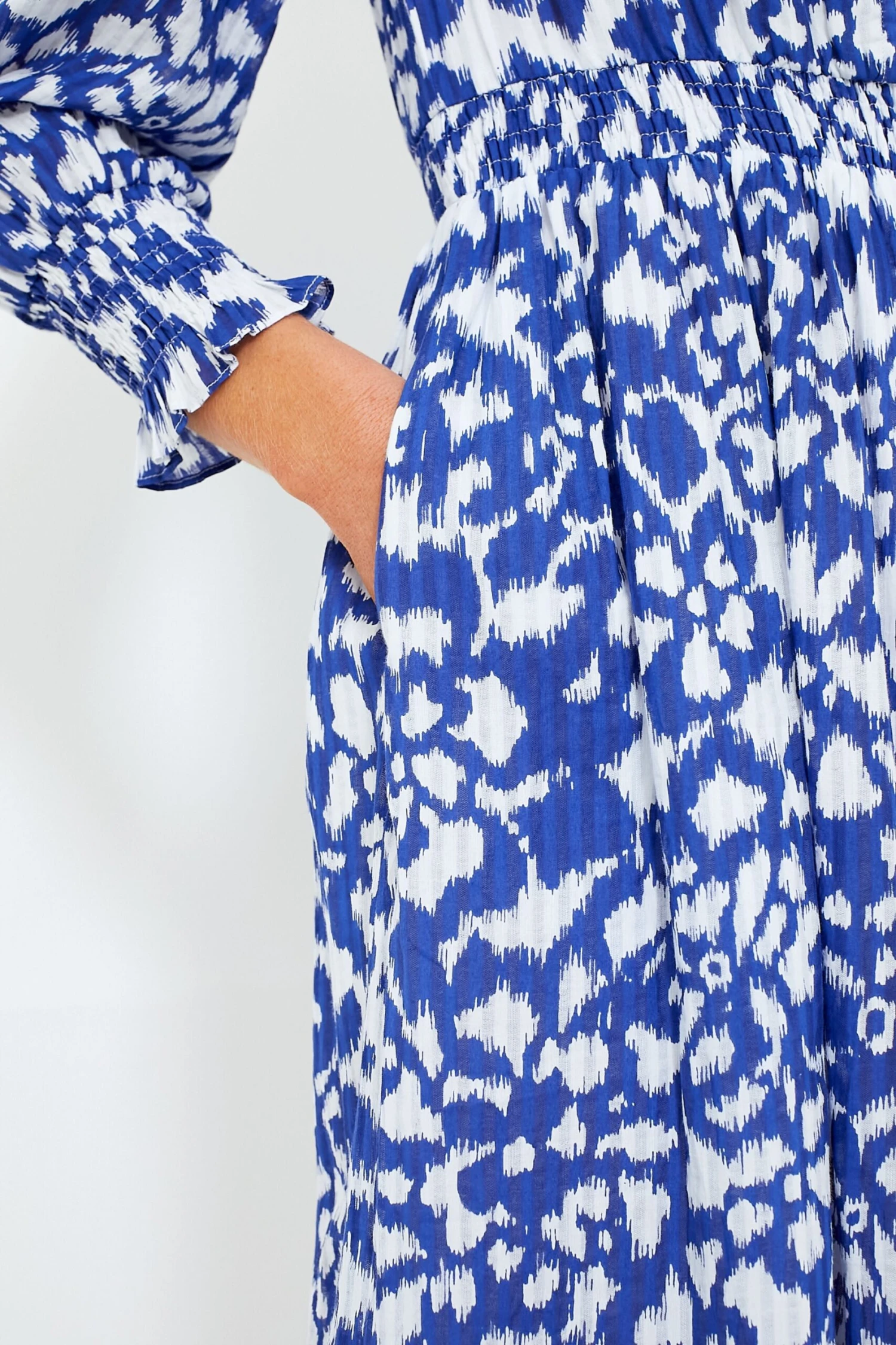 The Bluing Pearl Dress is a perfect go-to midi for dressing up or down, boasting an effortless silhouette with a charming Ikat floral print. The V-neckline, blouson sleeves, elasticated waist and cuffs, and a softly voluminous tiered skirt create a flattering shape that can be worn for occasion after occasion. We are styling this with raffia accessories for a vacation look, or with heels and gold hoops for a dinner date.Â