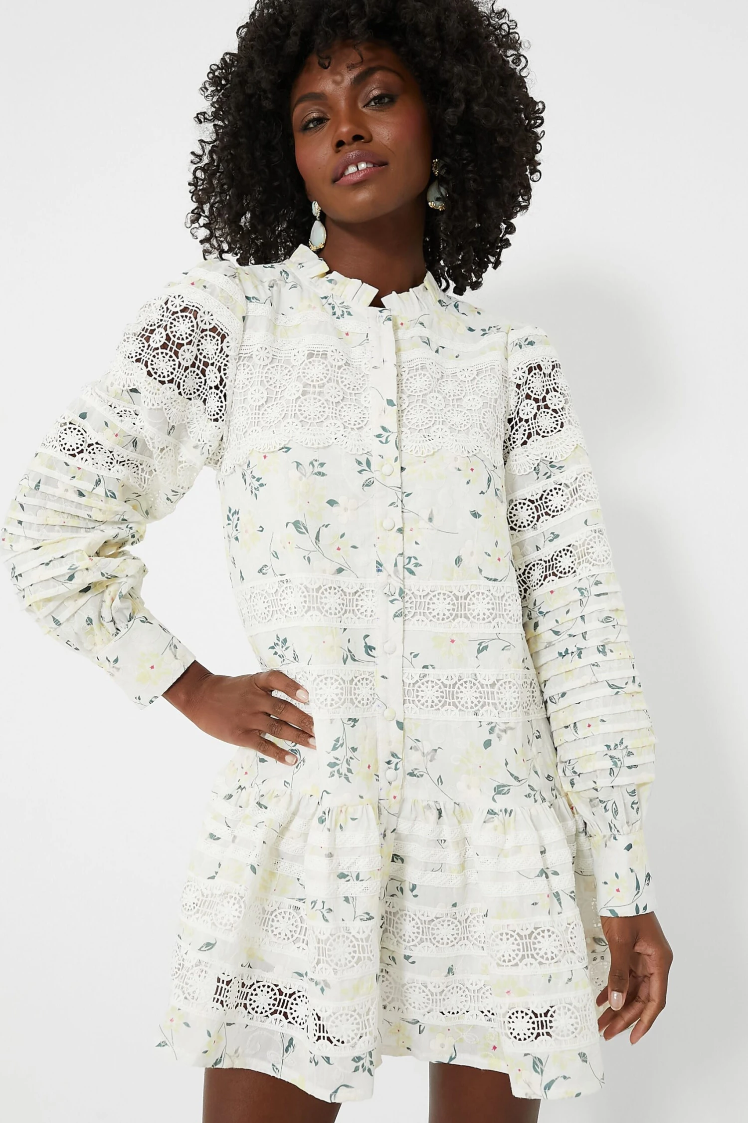 Ultra-feminine yet completely unfussy, the Yellow Lou Lou Dress features pale buttercream florals and delicate details. With horizontal pintucks and lace insets across the puffed sleeves, dropped waist bodice, and flowy mini hem, this frilly frock is something special. Versatile enough for dressing up or down for any occasion, we love styling with heels and a clutch for weekend plans, or with flat sandals and sunnies to go casual.