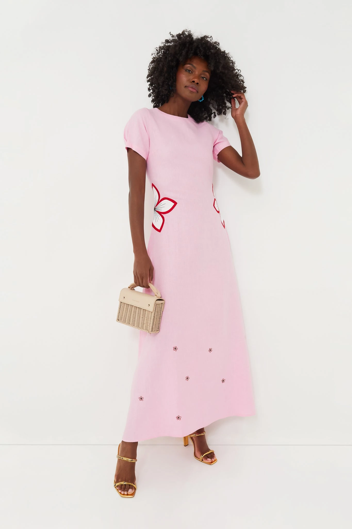 Pretty in Pink! The Fondant Kandra Dress is sure to turn heads.Featuring an A-line silhouette, this maxi boasts a round neck, short sleeves, and floral embellishment on side waist and hem, this stunner is going to have you look and feel extra-special. Style with heels and sunnies for a sunday brunch with your gals, or elevate it with heels and statement earrings for a seaside wedding or al fresco dinner date!