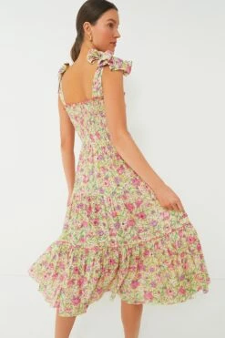 Everyone needs a staple dress for the warm weather months, and the Green Petunia Long Triny Dress is an adorable touch. With tie shoulder straps, a smocked bodice, and a tiered skirt. Lightweight and comfortable for a day in the sun, this versatile dress can be worn with heels and statement earrings to dinner or sneakers and a crossbody to run errands.Â