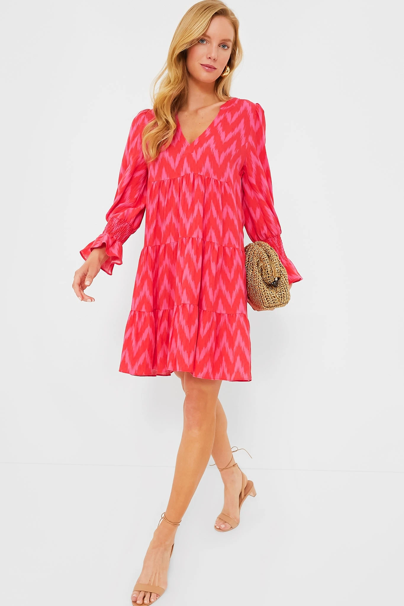 A Tuckernuck fan favorite, the Hot Pink Ikat Kenzo Dress is the mini of the season. Featuring feminine flutter smocked cuffs, a V-neckline and a loose empire waist, this is the most flattering flirty frock! Pair with flats for a casual look or dress up with heels and statement earrings for date night.