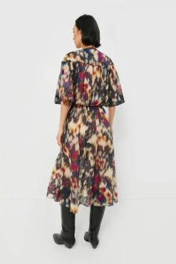 Fluttery, feminine, and flattering, the Ochre Black Maggy Watercolor Dress is a stellar statement-maker! Featuring playful sleeves, button-down front placket, cinched waist and a full skirt bringing flowy movement that we can’t get enough of. Pair this midi with heels or boots, from desk to drinks, brunches to dinner parties!