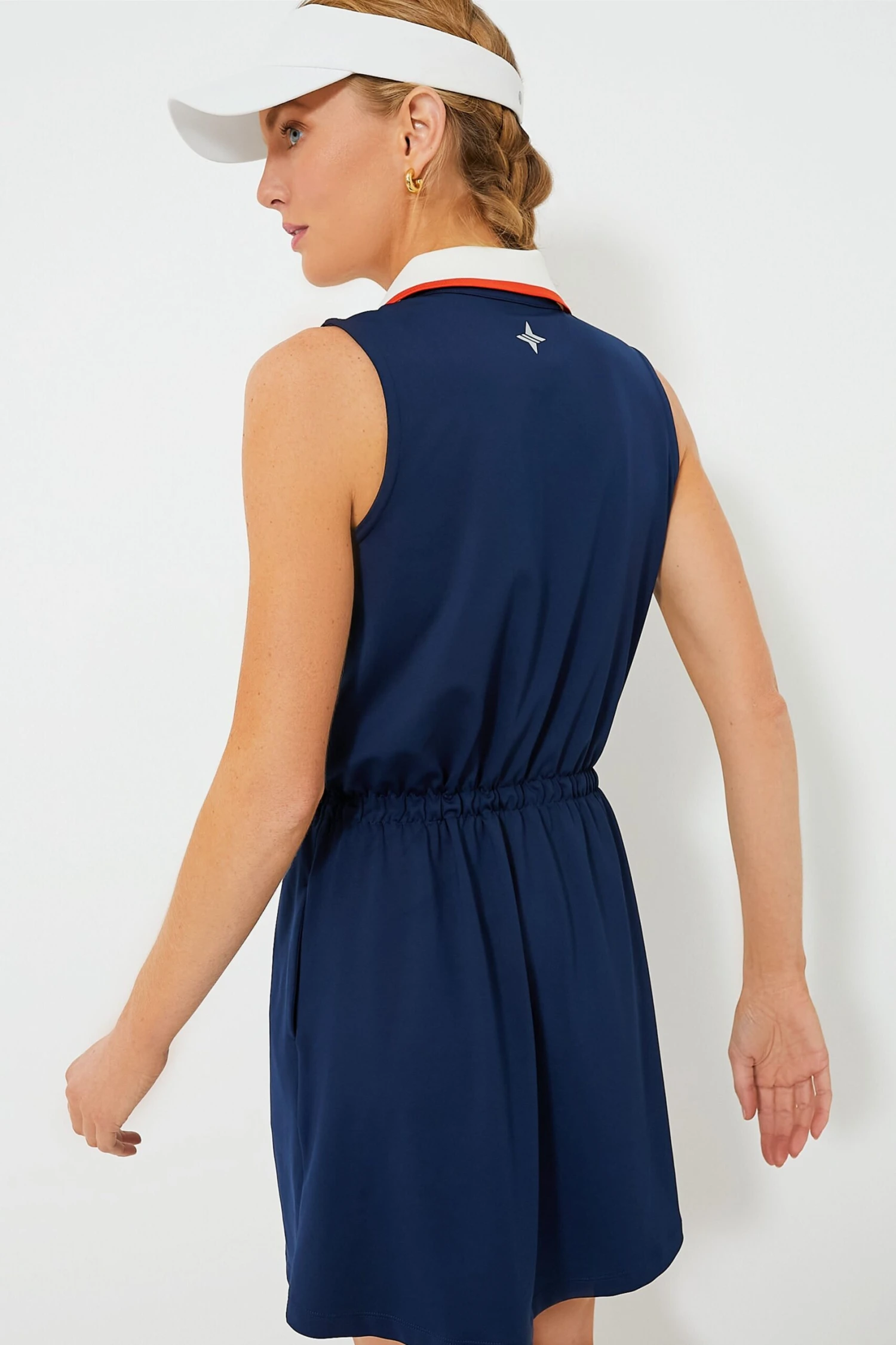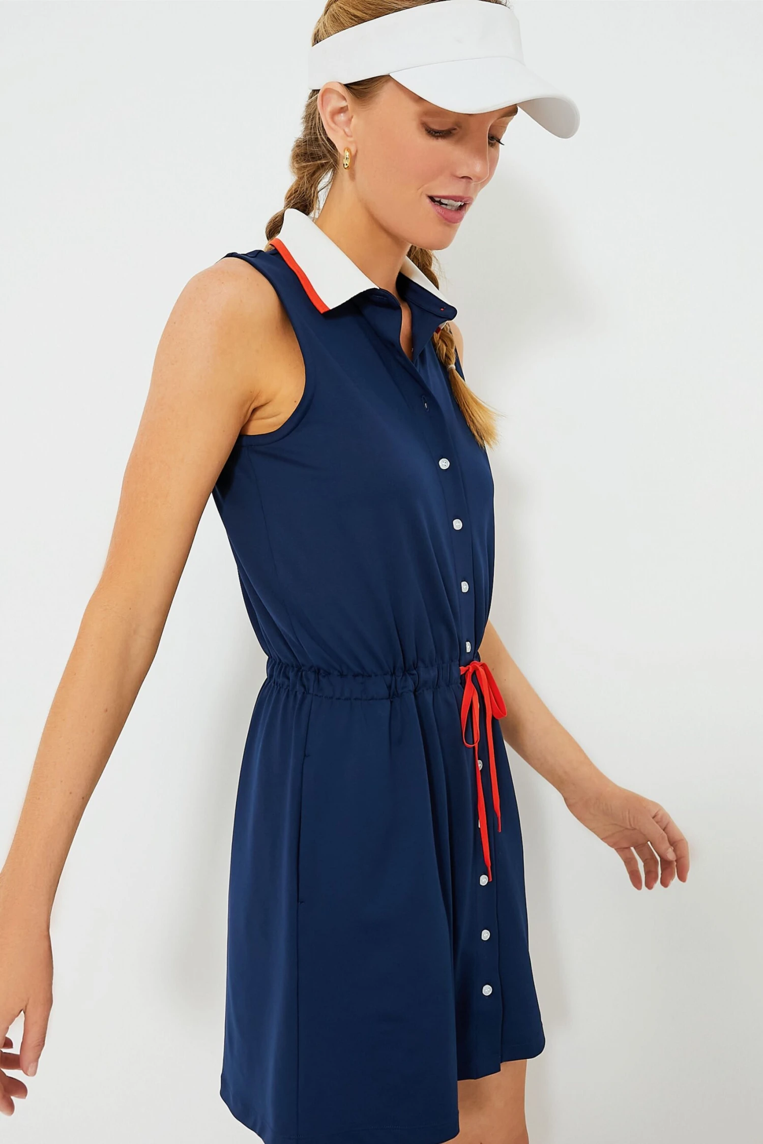 The Navy Sleeveless Alcott Golf Dress will take you from the course to the carpool line with ease and style. Pair with bike shorts for peace of mind while moving and grooving from activity to activity. Soft to touch and filled with details, this throw-on-and-go mini is sure to be played on repeat with its no fuss but all the frills style.
