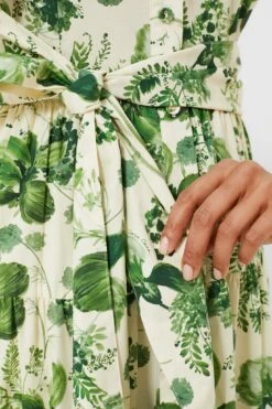 The Olive Hanging Orchids Adriana Dress promises to make you stand out in both comfort and style. Featuring a sleeveless shirt dress silhouette with flowy five tiered maxi skirt and a self-tie belt to cinch your waist, it makes the perfect “guest of” dress. We love to pair it with heels, clutch, and gold jewelry for an effortless look that works well for luncheons, baby showers, and cocktails..