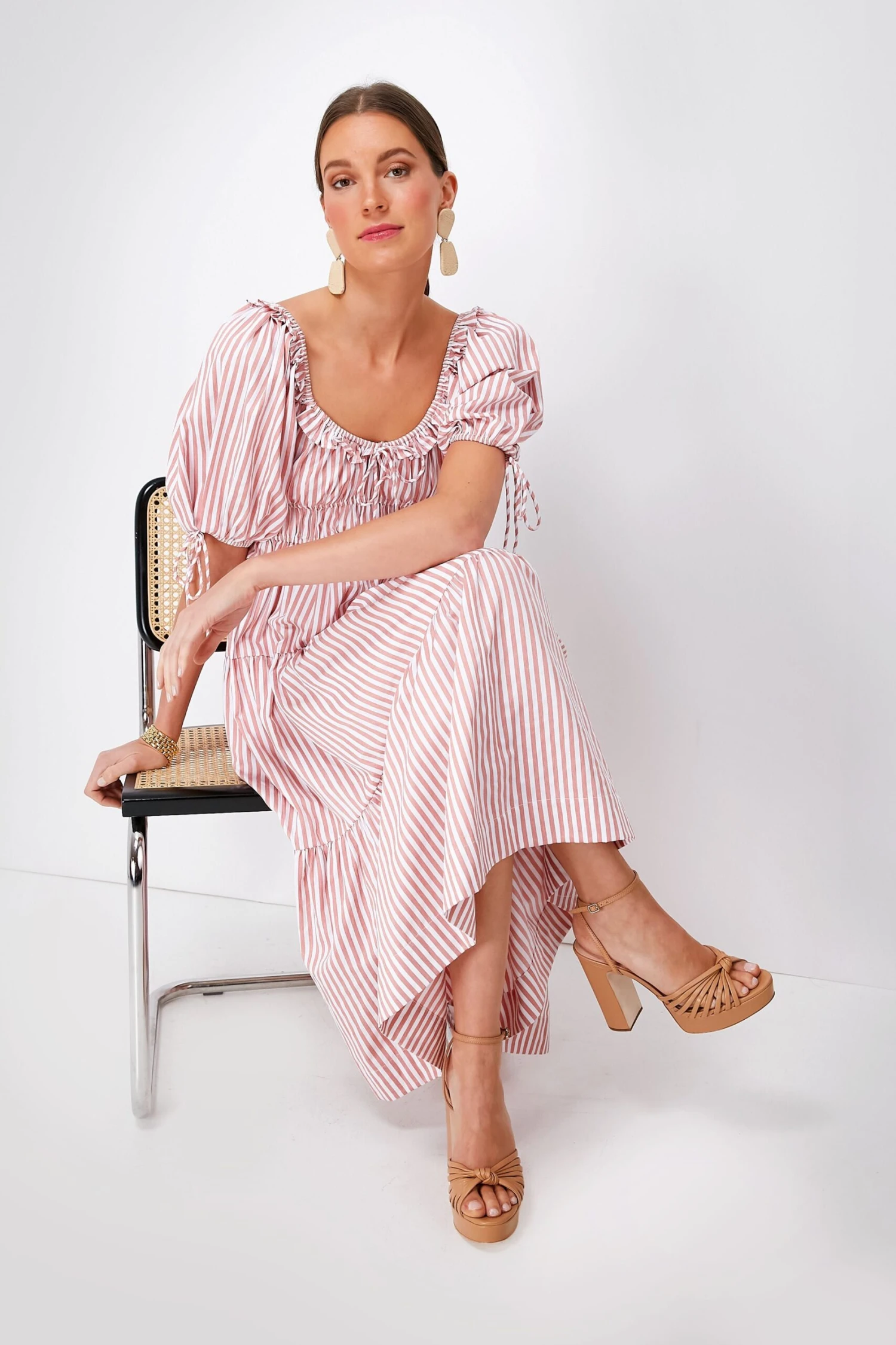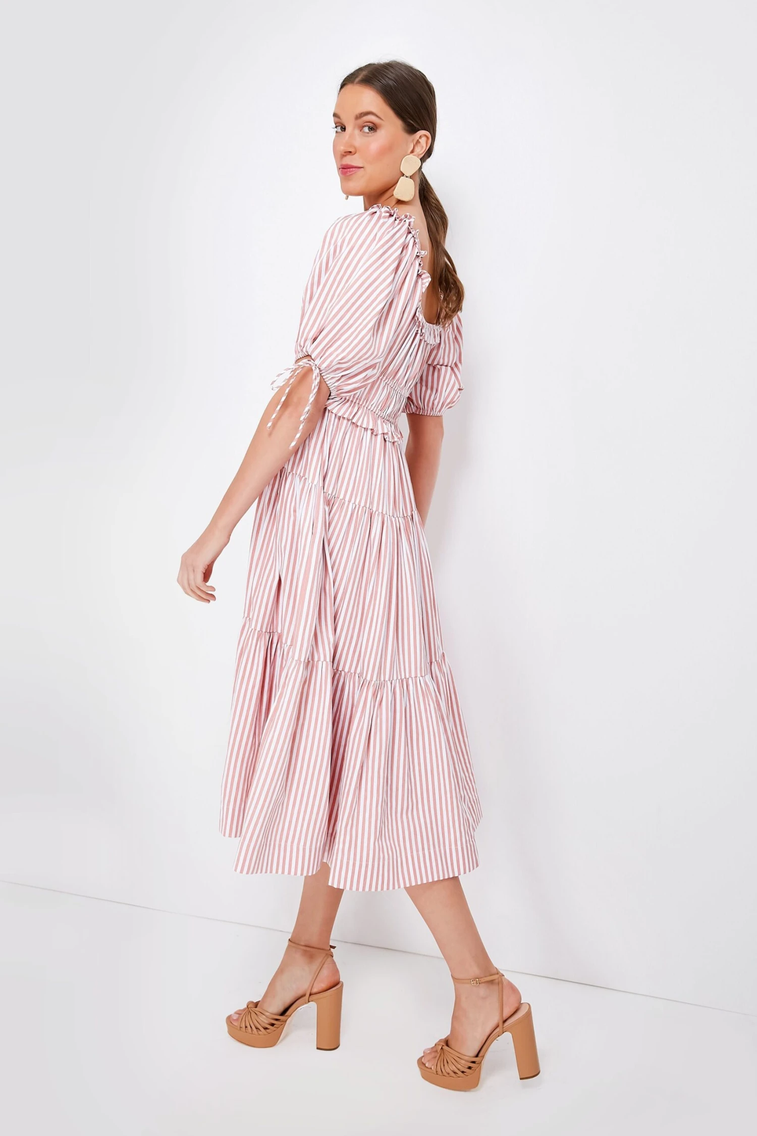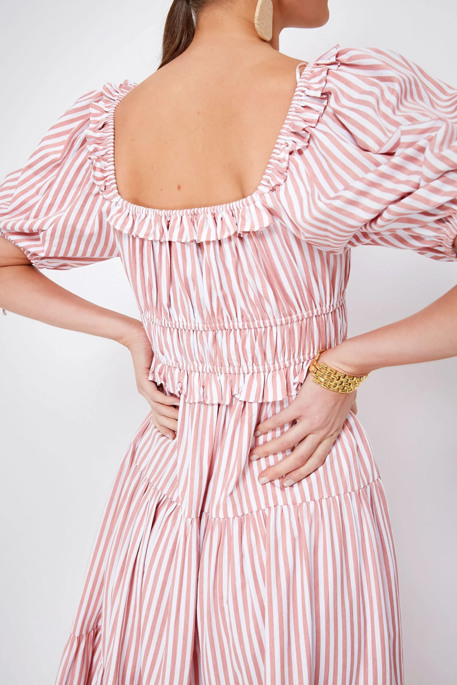Feminine and romantic details make this easy-wearing midi an everyday favorite! The Pink Striped Brielle Dress has subtle ruffles around the neckline, self-tie bows, and a shirred bodice that come together to create an effortlessly frilly frock you’re sure to fall in love with. A great way to get a whole lot of compliments, pair this sweet silhouette with heels and a clutch for springtime celebrations, or with sandals and gold hoops for no-fuss style.