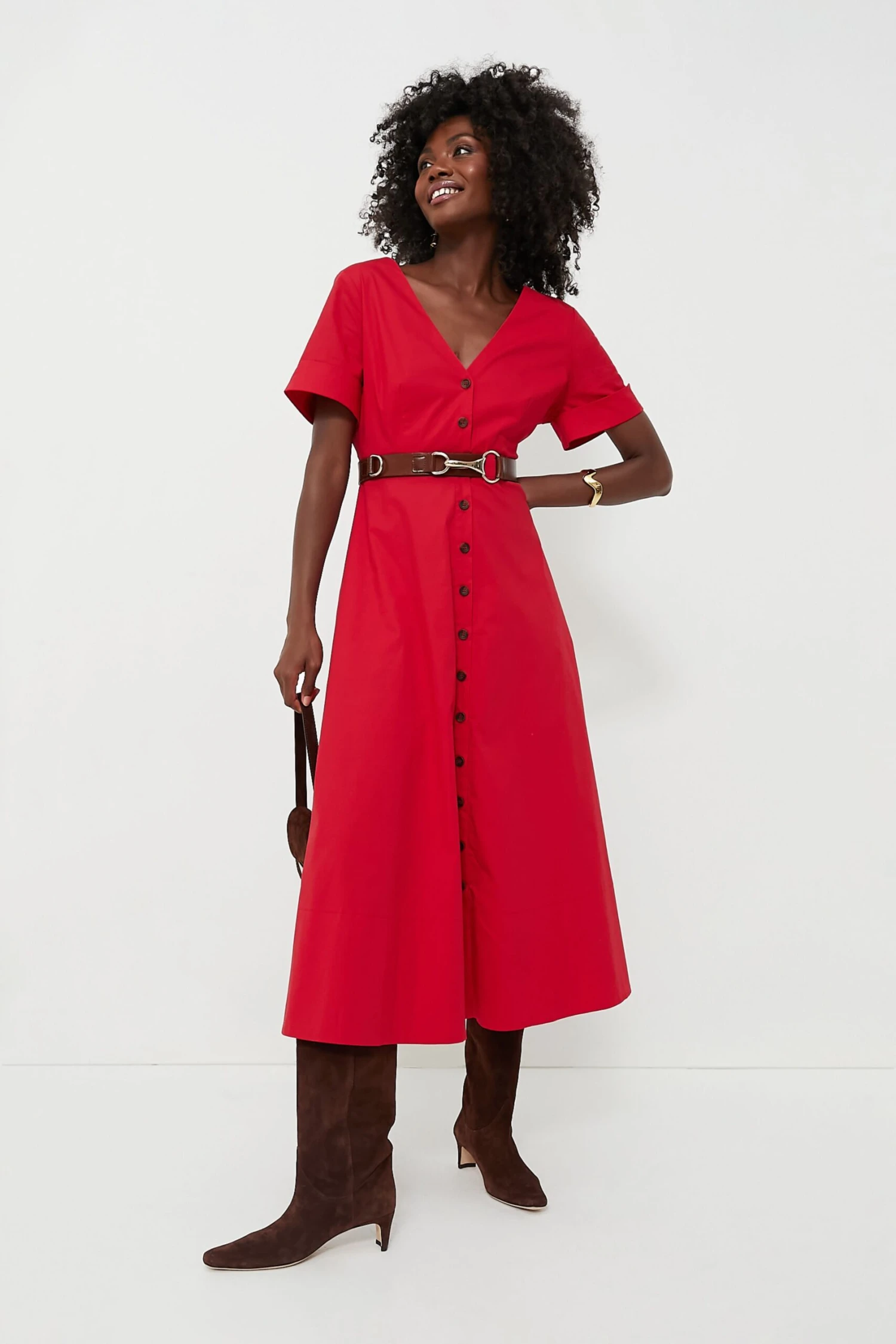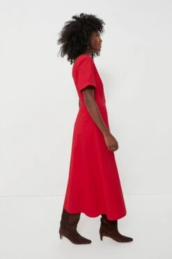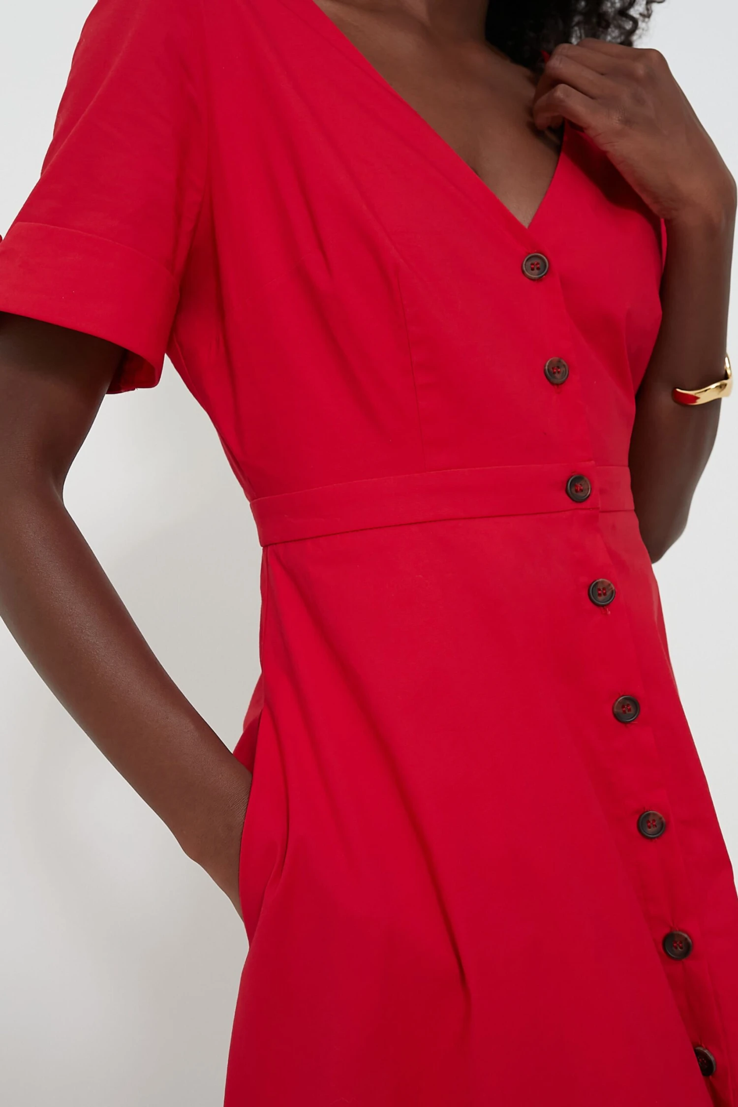 Elevated yet effortless, the Kate Dress is perfect for everything from causal outings to cocktail soirees. Our favorite details include the chic V-neckline, short sleeves with rolled cuffs for a tailored touch, and the subtle waist detailing that lends itself to the most flattering effect — and we can’t forget about the sweet buttons that add a polished finish to this maxi. Dress this fiery number up with platform heels or opt for flats for a more toned down look.Â