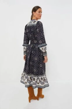 Bring effortless style to your wardrobe with the Sabina Lara Midi Dress. We love the beautiful florals on this relaxed silhouette for a boho-chic look, as well as its self-tie belt to cinch the waist, and that fabulously swingy border-printed skirt. We are pairing this piece with boots and gold accessories for the office, errands, family get-togethers, and more.Â
