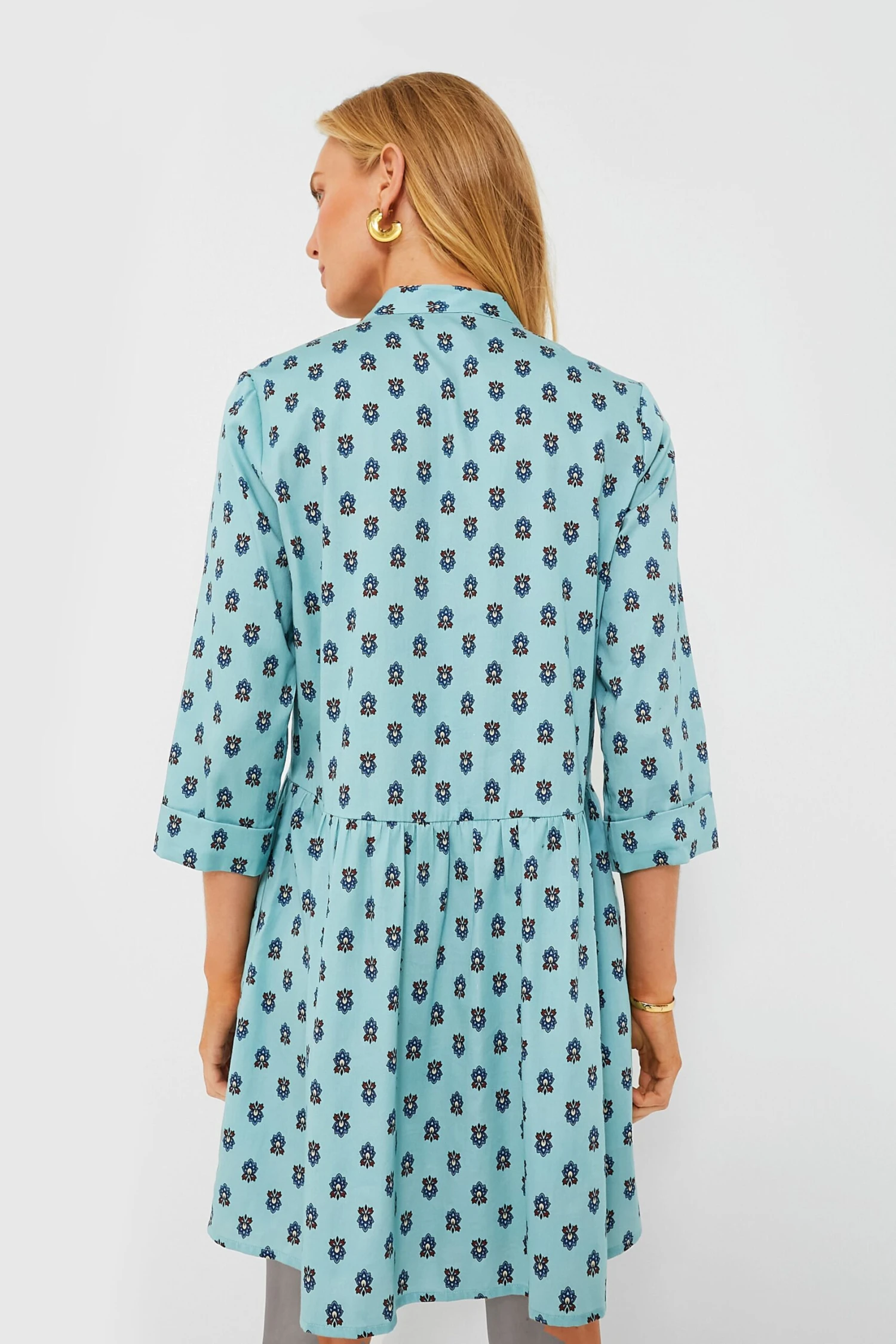 This beautifully printed silhouette is made for your closet! The Slate Blue Half Drop Royal Shirt Dress is amazingly lightweight and a perfect transition piece that is easy to accessorize. Featuring a round neckline, three-quarter sleeves, and a front button placket, this mini is flattering and flirty. Style with white sneakers and a hat for running errands or dress it up with heels and statement earrings for dinners al fresco.Â