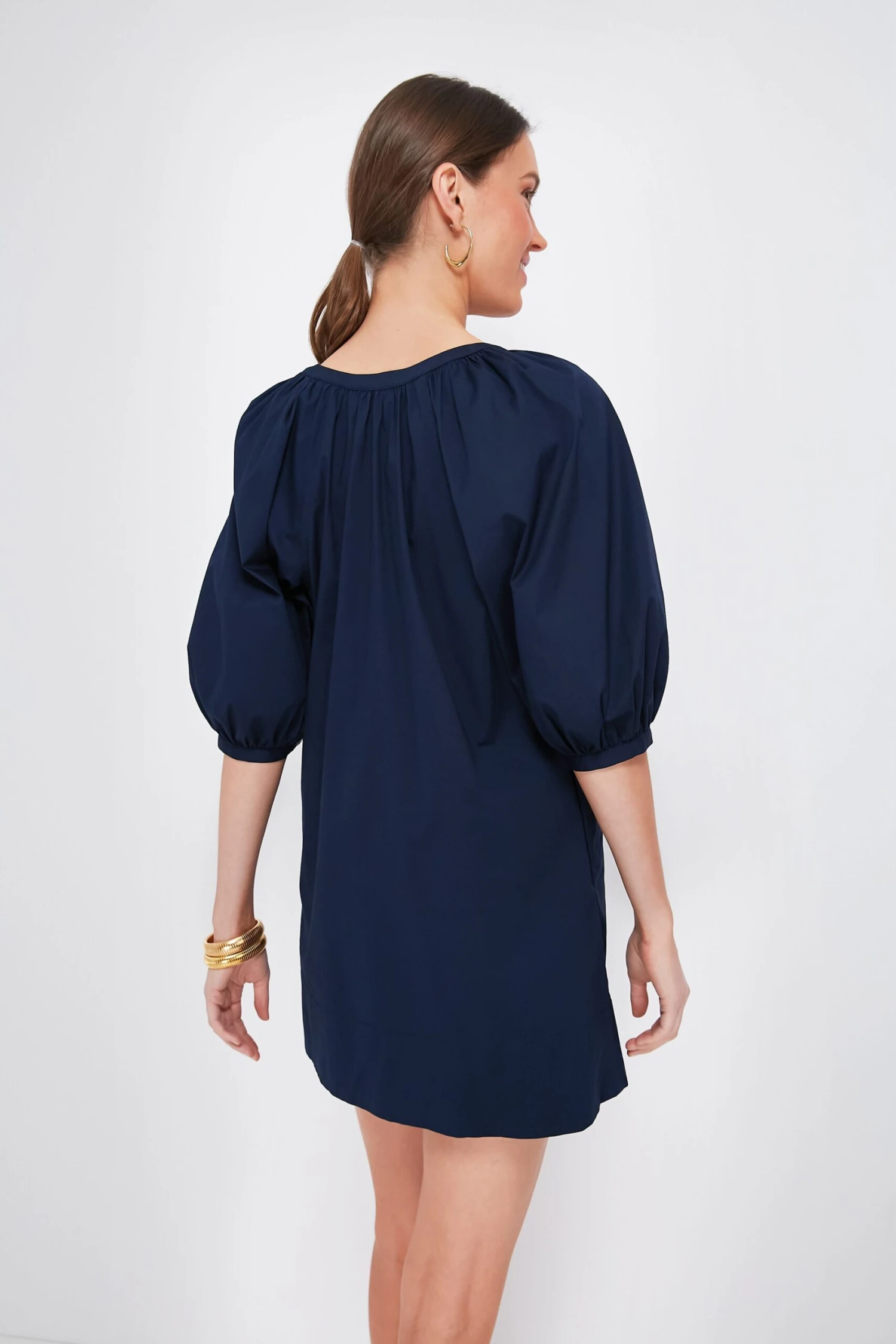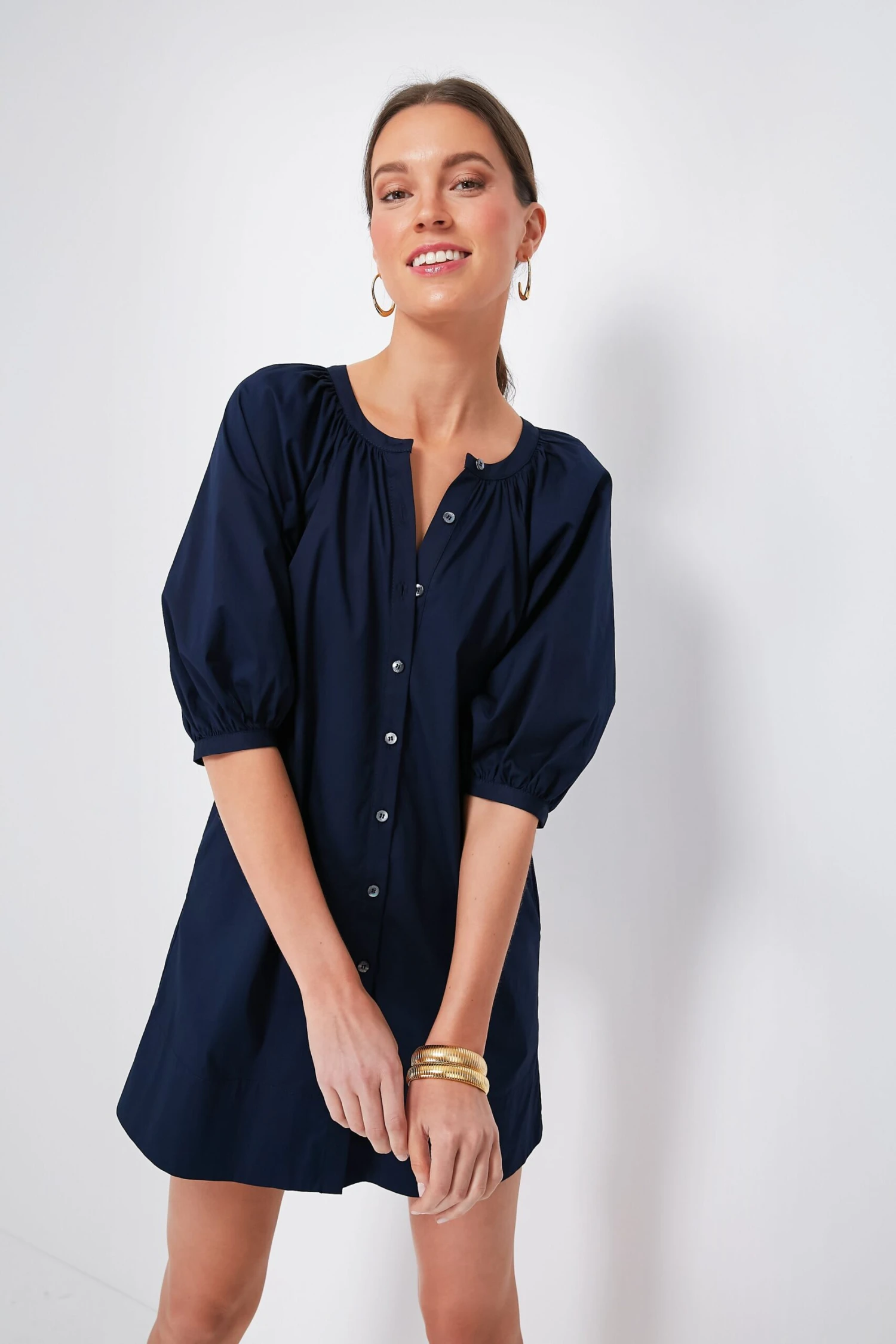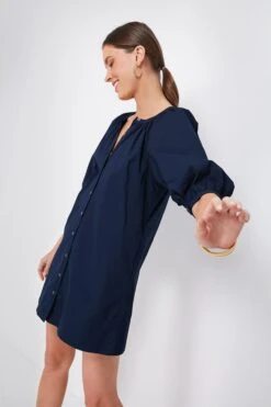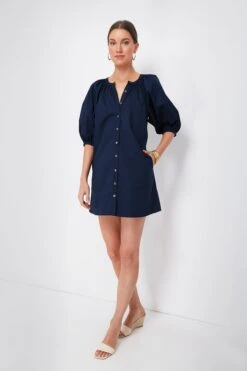 A best-seller in an updated mini length, less is more with the Navy Vincent Dress. Crisp, chic, and understated, this neutral silhouette will carry you from season to season with just a quick switch of accessories and have you feeling amazing all the while. Pair with heels and gold jewelry for dinners al fresco or sandals and raffia accessories for vacation adventures and sun-filled days.