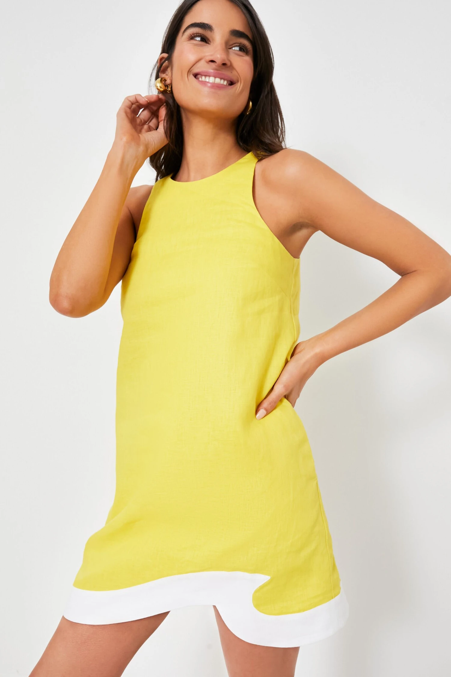 You will be a ray of sunshine in the Sunrise Allori Dress by STAUD. A sleeveless shift mini with a wave-design hem and vibrant yellow color, this style is the epitome of “joie de vivre”. Pair with sandals and sunnies for a day strolling around town, or with espadrilles and statement earrings for brunch with the girls.Â