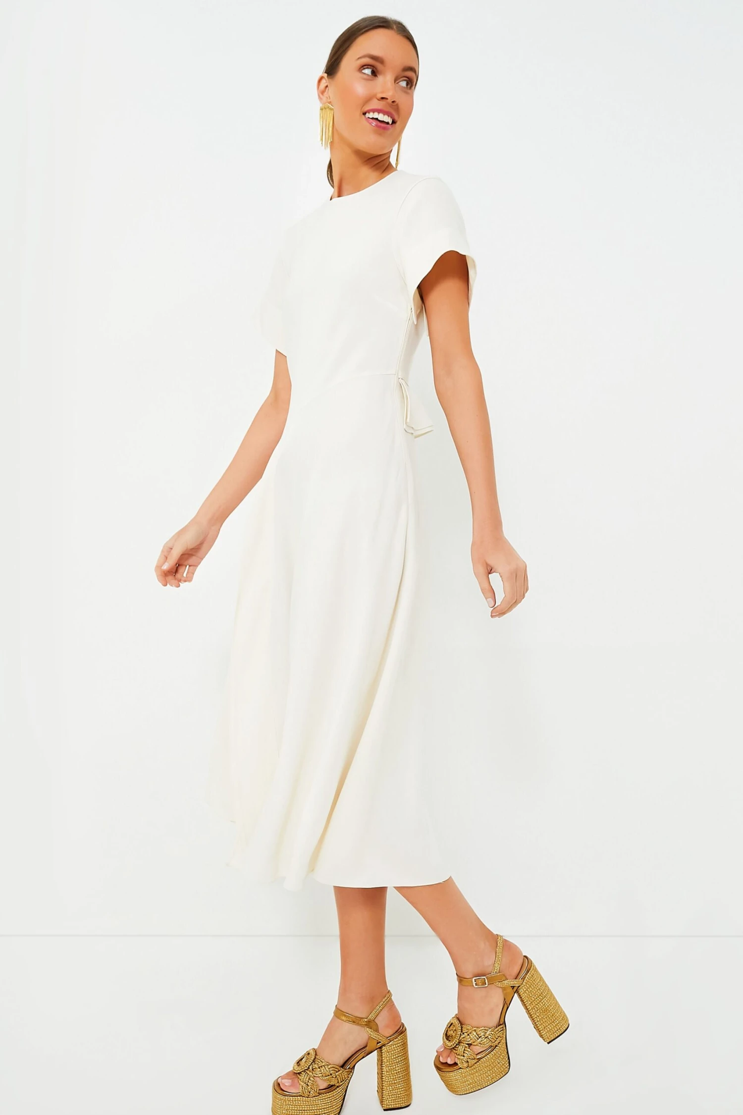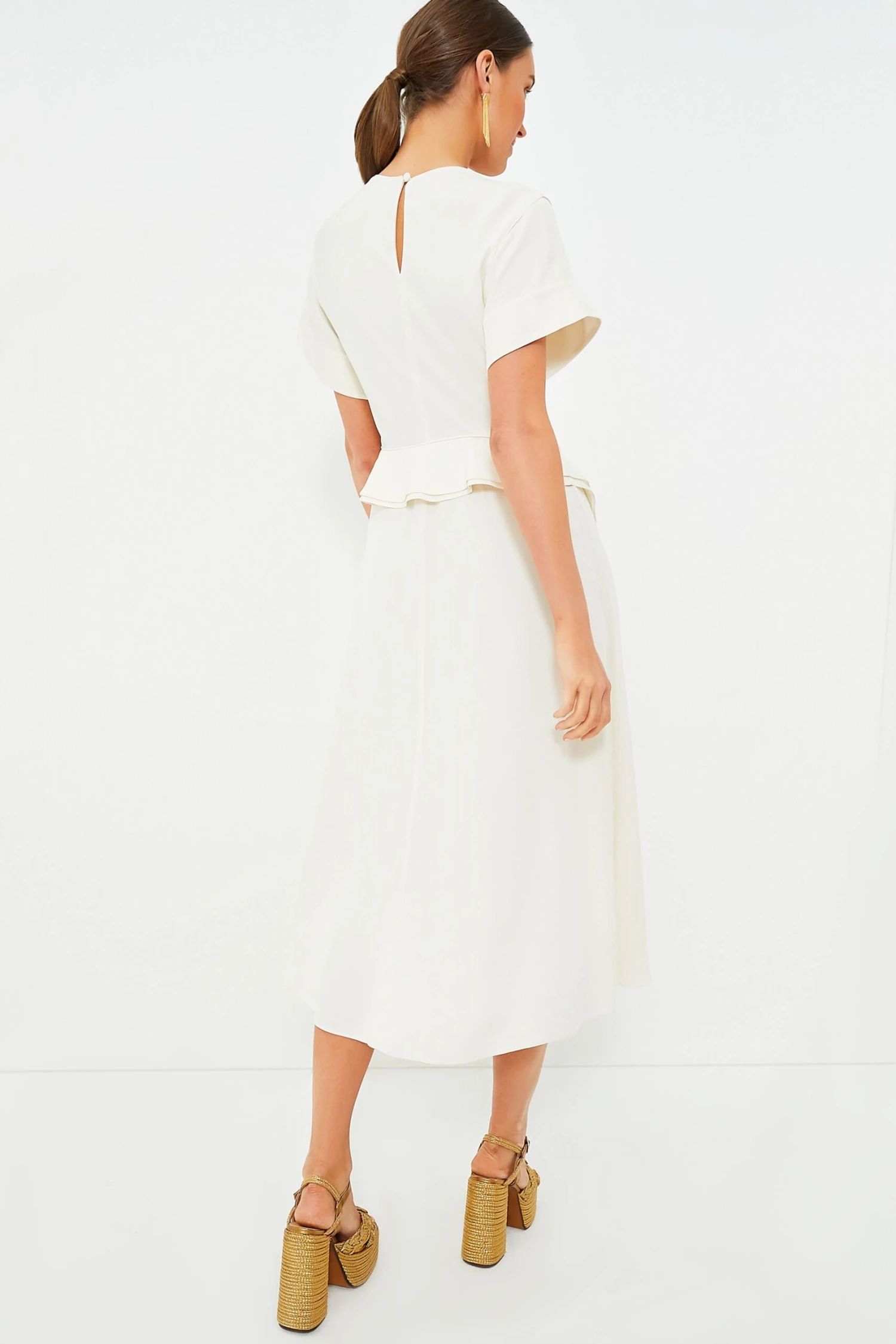 We’re just speechless looking at the lovely Pristine Cassia Dress. Made from smooth satin-back crepe, this midi silhouette features a round neckline, short sleeves with tonal piping and ruffles that cascade from the waist making it the perfect statement piece for your wardrobe. Dress this neutral number up with platform heels or opt for flats for a more toned down look.