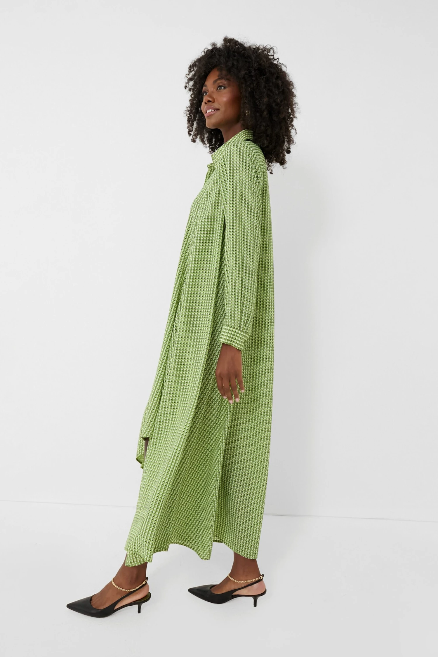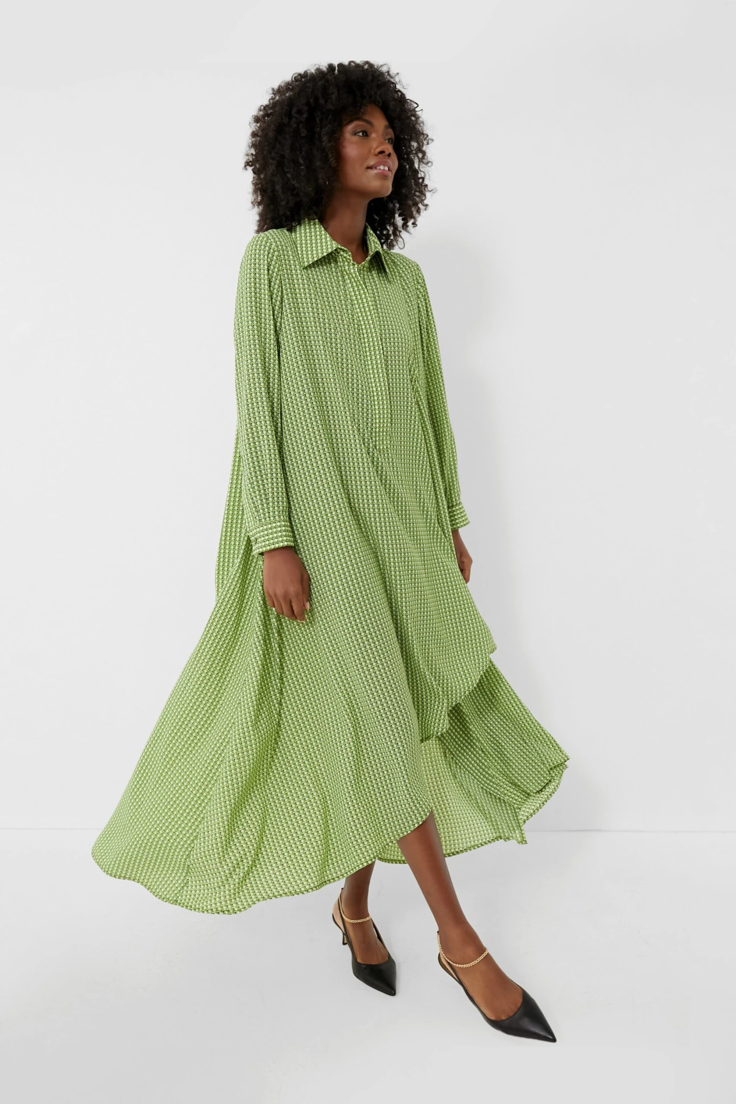 Full of freshness and fun, the Verdant Basketweave Lucille Dress is adorned with the most gorgeous green geometric print — but the details certainly don’t stop there. We love this swingy silhouette that is unlined for a beautiful flowy drape, the polished point collar, concealed partial placket, and that quirky-cool asymmetrical hem. Stand apart from the crowd in this stunner by pairing it with kitten heels for the office, or with flats and statement earrings for happy hour with your girlfriends!