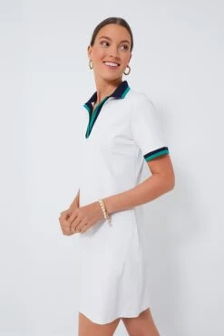 Evoking the style of a timeless and chic tennis dress, the White Hutton Polo Dress looks sharp and sporty while still managing to be soft and feminine. Defined by its contrast rib knit collar that can lay flat or stand on its own and everyone’s favorite detail, pockets, this mini effortlessly polished. Rock it while playing lawn games with friends, and no need to change when victory has been declared and it’s time for evening cocktails.